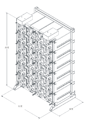 ●钢架模块设计。电池安装在永久性的钢架模块中,每个壳内装有1或2个电池单体。